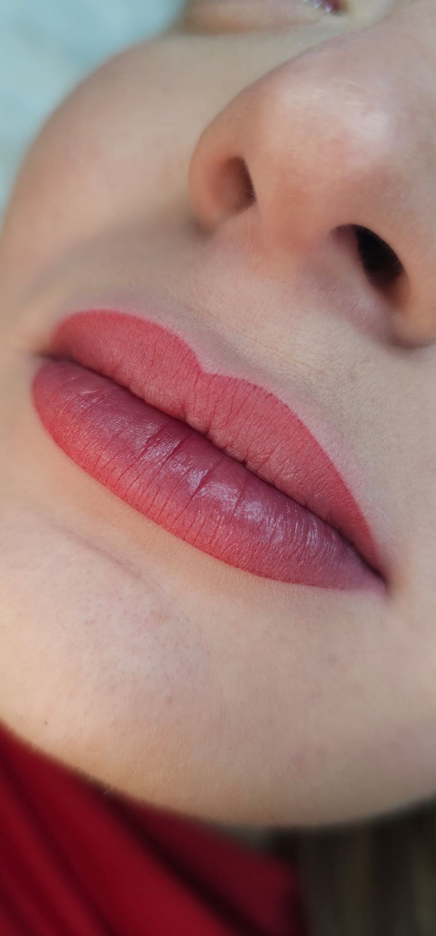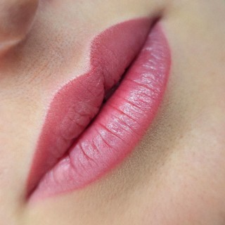 Maquillage semi-permanent pour des lèvres colorées et définies durablement.