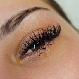 Technique d'extensions de cils pour un volume maximal et un effet glamour.