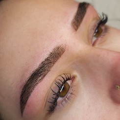 Maquillage semi-permanent pour des sourcils à l'effet naturel et soigné.