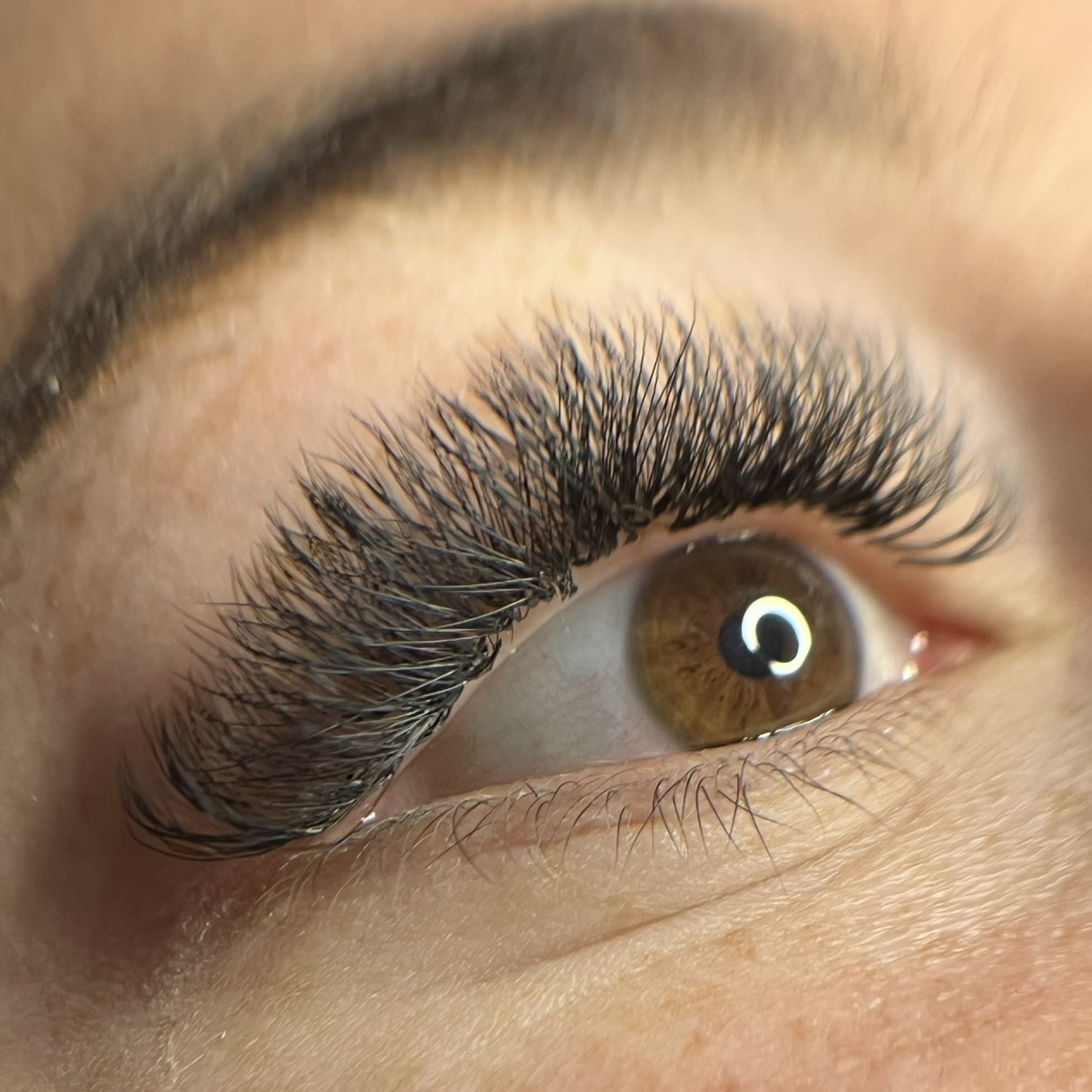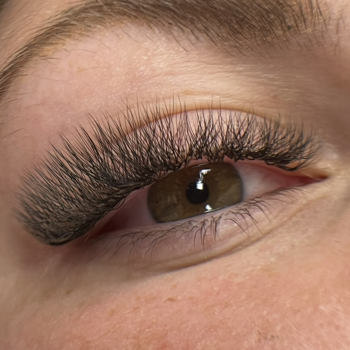 Extension de cils avec volume russe léger pour un regard plus dense.