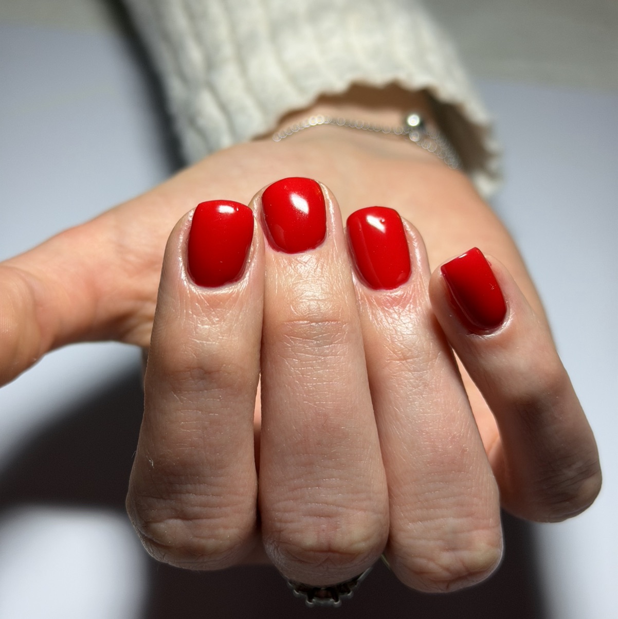 Renforcement des ongles avec application de vernis semi-permanent.