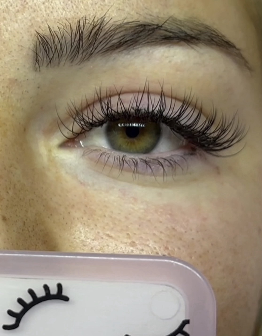 Retrait des extensions de cils appliquées par un autre salon, effectué avec soin pour éviter d'endommager les cils naturels.