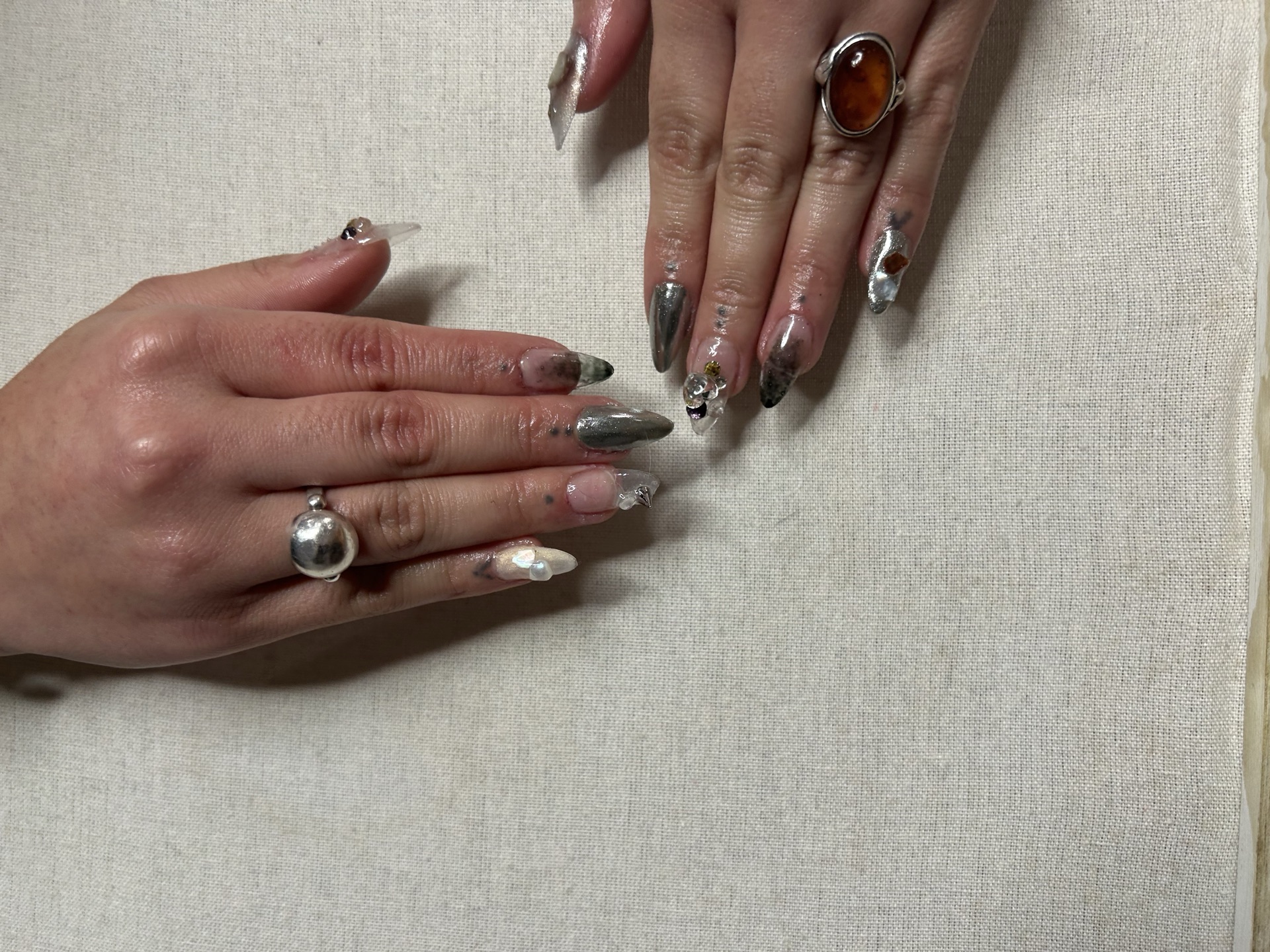 Application de gel avec un design complexe pour un look unique et sophistiqué.